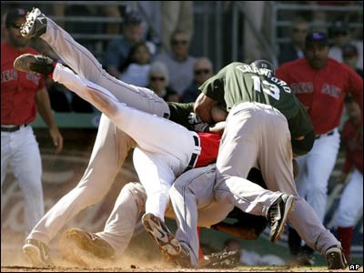 رقابت بين بازيکنان دو تيم ببِس بال 'تامپابی' و 'بوستون ردساکس' در مسابقات فورت ميرز در فلوريدا