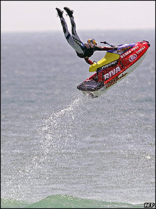 'جيمز ويسر' جت اسکی سوار آفريقای جنوبی، در مسابقات جهانی آزاد ورزشهای آبی در 100 کيلومتری شمال غربی ليسبون