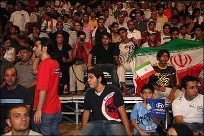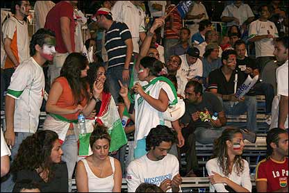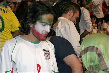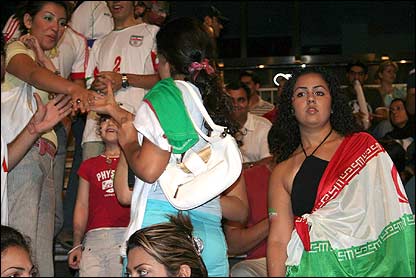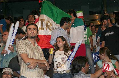 ايرانيان مقيم دوبی هنگام تماشای بازی ايران - مکزيک