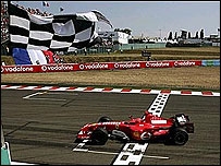 پيست اتومبيلرانی 'مگنی کور' فرانسه، روز يکشنبه ميزبان يازدهمين دوره از مسابقات قهرمانی گراندپری فرمول يک، بود که با پيروزی مايکل شوماخر راننده ۳۷ ساله تيم ايتاليايی فراری به پايان رسيد.