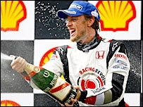 او سال گذشته با پرداخت ۱۶ ميليون دلار به تيم ويليامز، قرار داد خود را برای رفتن به اين تيم فسخ کرد، تا همچنان در تيم هوندا باقی بماند. با اين حال او از اوايل فصل جديد تا پيش از مسابقه مجارستان نتايج خوشايندی به دست نياورده بود. باتون اين دور از مسابقات را از جايگاه چهاردهم شروع کرد، اما موفق شد جلوتر از همه رقيبان از خط پايان گذر کند. پيروزی باتون باعث شد تا تيم هوندا که ازسال ۱۹۶۷ تا کنون هيچ مقام اولی در جدول مسابقات بدست نياورده بود، بار ديگر نام خود را در مقام اول اين مسابقات ثبت کند. در پيست مجارستان پدرو دلاروسا، راننده اسپانيايی تيم مکلارن بنز، به مقام دوم رسيد تا برای اولين بار بر سکو قدم بگذارد. نيک هايدفلد آلمانی از تيم بی.ام.و نيز به عنوان سومين نفر از خط پايان گذشت. در مسابقه روز يکشنبه زمين لغزنده، نداشتن ديد کافی و انتخاب تايرهای نامناسب، رانندگان را با مشکلات مختلف روبرو کرد. دو مدعی قهرمانی اين فصل يعنی فرناندو آلونسو اسپانيايی، قهرمان فصل گذشته و صدر نشين جدول فعلی اين مسابقات از تيم رنو، و مايکل شوماخر آلمانی از تيم فراری، هفت بار قهرمان مسابقات فرمول يک، از جمله رانندگانی بودند که در مراحل پايانی مسابقه از دور خارج شدند.  | | | مايکل شوماخر تنها دو دور تا پايان مسابقه به علت مشکل فنی از مسابقه خارج شد |