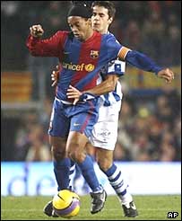 تيم بارسلونا با تک گل رونالدينيو، ستاره برزيلی خود، به يک پيروزی ديگر دست يافت و در صدر جدول ليگ اسپانيا باقی ماند