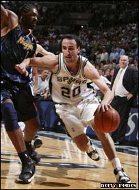 نبرد در سن آنتونیو، دومین شهر پرجمعیت ایالت تکزاس، با پیروزی تیم میزبان بر دنور با نتیجه 97 به 88، وارد مرحله تازه ای شد. در مسابقه اول دوتیم، قدرت نمایی آلن آیورسون و کارملو آنتونی، بازیکنان سرشناس دنور که در مجموع 61 امتیاز کسب کرده بودند، به همراه نمایش ضعیف تهاجمی بازیکنان سن آنتونیو، به باخت میزبان منجر شد، اما در بازی چهارشنبه شب، تیم دانکن، تونی پارکر، و مانو جینوبلی، به اذعان خود، جدی تر عمل کرده و بازیکنان سن آنتونیو، توانستند موانع بیشتری در برابر دو ستاره دنور ایجاد کنند.