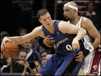 در قابل پیش بینی ترین بازی چهارشنبه شب، در کنفرانس شرق، واشنگتن بازهم نتوانست از پس کلیولند بربیاید. واشنگتن که در اواخر فصل عادی مسابقات، گیلبرت آریناس، ستاره امتیاز آور خود را بعلت مصدومیت از دست داد، در مسابقه دوم در برابر کلیولند هم شکست خورد. دیدار در شرایطی انجام شد که لبرون جیمز، ستاره کلیولند، بواسطه مصدومیت در بازی اول در برابر واشنگتن (از ناحیه مچ پا) علی رغم 45 دقیقه حضور در زمین، بوضوح عملکرد محدودتری داشت و در انتهای بازی هم، سالن مسابقه را با مچ پا و زانوی باند و یخ پیچی شده ترک کرد. با این حال درو گودن، فوروارد قدرتی کلیولند، با کسب 24 امتیاز و 14 ریباند، نقشی کلیدی در برد دوم کلیولند ایفاء کرد. |