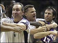 بازی های بعدی به شدت تحت تاثیر اظهارات آماره استودامایر، سنتر فینیکس قرار داشت که بازیکنان سن آنتونیو را به "کثیف بازی کردن" متهم کرده بود. این فضا در بازی چهارم هم وجود داشت و در دقایق پایانی به اوج خود رسید. ۳۰ ثانیه به پایان بازی و در شرایطی که سن آنتونیو برد را با باخت عوض کرده بود، رابرت اوری، فوروارد باتجربه این تیم که بیش از ۱۵ سال در ان بی ای بازی کرده، در برخوردی شدید، استیو نش را مقابل میز داوران در میانه میدان، به زمین پرتاب کرد، که باعث ایجاد جنجال شد. راجا بل، بازیکن فینیکس که در حمایت از هم تیمی خود به سمت رابرت اوری حمله ور شده بود، خطای فنی گرفت و البته، اوری با گرفتن یک خطای غیر ورزشی، از زمین اخراج شد. تاکنون در مجموع چهار بازی، سهم هرتیم دو پیروزی بوده و انتظار نمی رود که این رویارویی به سادگی خاتمه یابد. |