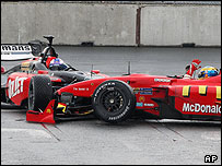 با شدت گرفتن بارش باران در میانه مسابقه بسیاری از رانندگان با هم برخورد کردند و در لپ (دور) 68 سباستین بوردی قهرمان 28 ساله فرانسوی تیم نیومن هاس، قهرمان سه دوره پیاپی مسابقات چمپ کار که مسابقه را از مکان اول استارت زده بود با رابرت دورنباس راننده تازه وارد هلندی این مسابقات از تیم میناردی، برخورد کرد و از دور مسابقه خارج شد.