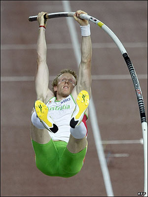 استیون هوکر از استرالیا در مرحله نهایی رقابت های پرش با نیزه در اوزاکای ژاپن