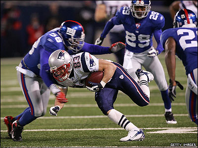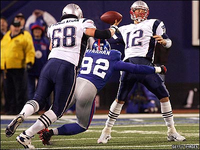 شنبه 29 دسامبر، در استادیوم نیویورک جاینتز (Giants) ، نیوانگلند 38-35 جاینتز را شکست داد تا برای اولین بار در تاریخ لیگ حرفه ای فوتبال آمریکایی (NFL) هر شانزده مسابقه فصل عادی را با پیروزی پشت سر گذاشته باشد. رکورد پیشین به تیم میامی دولفینز (ِDolphins) تعلق داشت که در سال 1972، زمانی که فصل عادی 14 مسابقه طول داشت، کل مسابقات فصل عادی را برده بود و با پیروزی در مسابقات مرحله حذفی (پلی آف) به مقام قهرمانی ان اف ال رسیده بود.