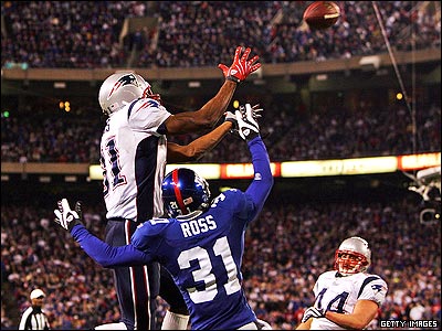 رندی ماس، واید رسیور (پاس گیر) نیوانگلند با دریافت توپی که تام بریدی از فاصله 65 یاردی پرتاب کرده بود و عبور دادن آن از خط عرضی جاینتز، رکورد تازه ای در تعداد تاچ داون های کسب شده در یک فصل ثبت کرد (22).