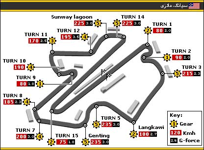 پیست سپانگ در جنگل های نزدیک فرودگاه بین المللی جدید کوالالامپور ساخته شده است. رانندگان در این پیست در هوایی مرطوب و گرم