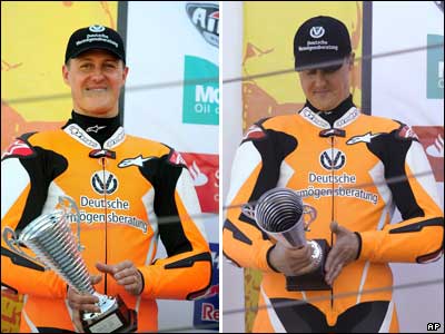 شوماخر در اولین حضورش در سری مسابقات موتورسواری 250 سیسی میزانو، ایتالیا، با موتور کی تی ام از ردیف اول استارت زد و به مقام چهارم این مسابقه رسید. او گفت: "تجربه جالبی بود و اوایل مسابقه با کمی احتیاط رانندگی می کردم بعد که متوجه کنترل بهتر موتور شدم خودم را توانستم به مقام های بالاتر برسانم." از او پرسیده شد آیا خیال شرکت در مسابقات موتورسواری با اندیشه قهرمانی در رقابتهای دوچرخ را هم دارد یا نه؟ او در جواب گفت: " فعلا نه"