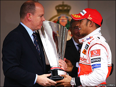قهرمان مسابقه، جایزه خود را از حاکم موناکو دریافت می کند که در این مسابقه نیز، لویس همیلتون جایزه را از دستان پرنس آلبرت دوم گرفت. |