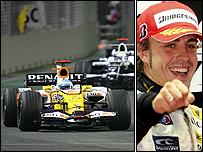 فرناندو آلونسو راننده اسپانیایی تیم فرمول یک رنو، با پیروزی در گراندپری سنگاپور، پانزدهمین مسابقه فصل، اولین پیروزی خود در