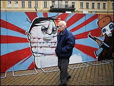انبوه مردم با فریاد "گوربی، گوربی ما را یاری بده!" از رهبر اتحاد شوروی میخواهند که ندای حقطلبانهی آنها را خفه نکند.