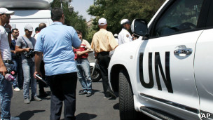 ناظران سازمان ملل در ماه آوریل به سرپرستی ژنرال رابرت مود وارد سوریه شدند و تعداد آنها در مقطعی به سیصد نفر رسید.