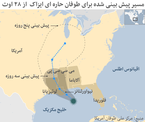 گفته می شود ایزاک هم اکنون در خلیج مکزیک به سمت ایالتهای لوئیزیانا، میسیسیپی و آلاباما در حال حرکت است.