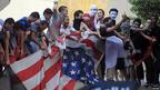 • بعضی از تظاهرکنندگان از ساختمان سفارت آمریکا بالا رفته و پرچم این کشور را پاره کردند.