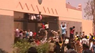 تظاهرکنندگان در صنعا، پایتخت یمن، در مقابل ساختمان سفارت آمریکا جمع شده و به آن حمله کردهاند.