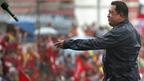 • هوگو چاوز در آخرین سخنرانی خود در تبلیغات انتخاباتی اش؛ در حالی که میکروفون را به سویی پرتاب می کند.