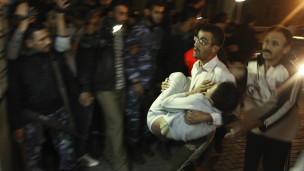 صدها تظاهرکننده خشمگین فلسطینی چهارشنبه در خارج از بیمارستان محل نگهداری پیکر احمد سعید خلیل الجعبری تجمع کردند و ضمن سر دادن شعار "انتقام"، خواهان شلیک موشک های فلسطینی به شهر تل آویو شدند.