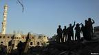 صبح امروز در غزه، فلسطینیان در ویرانههای خانهای که در حمله هوایی اسرائیل تخریب شده است