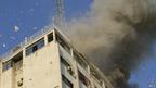 دود از ساختمانی که دفتر شبکه تلویزیونی الاقصی وابسته به حماس، در آنجا قرار داشت، بلند میشود. این ساختمان امروز صبح هدف حمله هوایی اسرائیل قرار گرفت