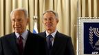 61. تونی بلر، نماینده گروه چهارجانبه برای صلح خاورمیانه (راست، عقب) در اسرائیل با شیمون پرز، رئیس‌جمهور اسرائیل (چپ، جلو) دیدار کرده است.