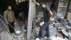 55. فلسطینیان در ویرانه های یک خانه که در حمله هوایی اسرائیل تخریب شده است