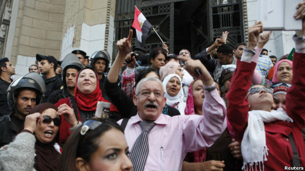 تجمع دیروز گروهی از مخالفان فرمان اخیر محمد مرسی برای افزایش اختیارات رئیس‌جمهور مصر