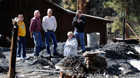 کندی مارتین، مالک کلبهای که دورنر در آن پناه گرفته بود (دومی از راست) در بازماندههای کلبهاش در روز ۱۵ فوریه