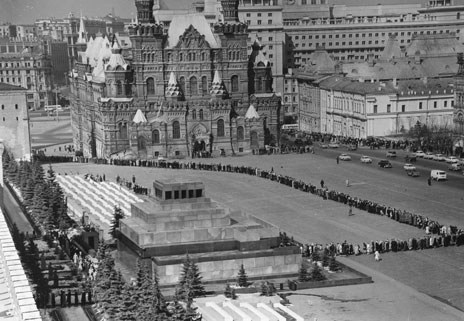صف مردم در میدان سرخ مسکو برای دیدن پیکر لنین