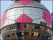 مرتفع ترين ساختمان برلين با توپ فوتبال آرايش شده است