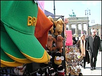 با آنکه چند هفته به آغاز مسابقات مانده، سوغاتی های سنتی برلينی در قالب کلاه، تی شرت و چتر به بازار آمده است