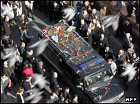 مراسم خاکسپاری هراند دینک روزنامه نگار ارمنی ترکیه در استانبول با حضور هزاران نفر از مردم برپا شد. هراند دینک روز جمعه گذشته در برابر دفتر روزنامه آگوس، که وی سردبیر آن بود به ضرب دو گلوله کشته شد و قتل وی موجب بروز اعتراضات خشمگینی در ترکیه شد. جمعیت زیادی که در برابر محل کشته شدن آقای دینک جمع شده بود، تابوت وی را در سکوت تا کلیسای ارمنی مشایعت کردند. عزاداران با خود پلاکاردهایی حمل می کردند که بر آنها "ما همه ارمنی هستیم" نوشته شده بود. مسروب دوم، رهبر ارامنه ترکیه در مراسمی که در کلیسا برگزار شد خطاب به عزاداران گفت که "برای تغییر این احساس در میان ترک ها که ارامنه دشمن هستند تلاش های فوری در مدارس و سایر جاها لازم است." مقامات قضایی می گویند که نوجوان مظنون به قتل آقای دینک به این علت دست به این اقدام زده که این روزنامه نگار در نوشته های خود خاطر نشان کرده بود که ترکیه حدود یک قرن پیش ارامنه را قتل عام کرده است. سارا رینسفورد خبرنگار بی بی سی در استانبول می گوید حضور مردم در مراسم خاکسپاری هراند دینک، احساس همبستگی گسترده با فردی بود که علنا در مورد یکی از حساس ترین مسایل ترکیه صحبت می کرد. به گفته او، برای بسیاری از مردم، هراند دینک در حال تبدیل شدن به یک شهید است. بسیاری در ترکیه بر این باورند که آقای دینک به علت نوشته های جنجالی اش در مورد کشتار صدها هزار ارمنی توسط ترک های عثمانی در سال 1915 مورد هدف قرار گرفت.
