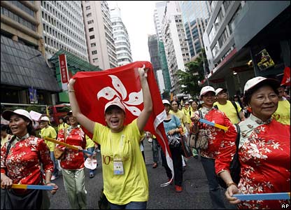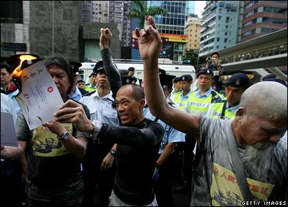 اما طرفداران دموکراسی در هنگ کنگ در همین روز تظاهراتی برگزار کرده اند و خواستار اصلاحات گسترده در نظام حکومتی هنگ کنگ شده اند.