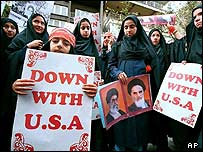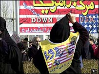 اشغال سفارت آمریکا در تهران و ماجرای گروگانگیری و بعد جنگ ایران و عراق، شعارهایی مانند "آمریکا هیچ غلطی نمی تواند بکند" و "مرگ بر آمریکا" را بخش اجباری و جدانشدنی سخنان رهبران جمهوری اسلامی کرد و دیری نگذشت که رهبران آمریکا هم با متهم کردن ایران به حمایت از تروریسم و اعمال تحریم اقتصادی به خصومت بیشتر بین دو کشور دامن زدند و روابط ناموجود بین دو کشور به آنجا کشیده شد که تهران، آمریکا را شیطان بزرگ خواند و واشنگتن، حکومت ایران را عضوی از محور شرارت.