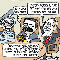 اتهام فساد درمورد آقای اولمرت، در روزنامه های اسرائیلی به شکل کاریکاتور هم منتشر شده است