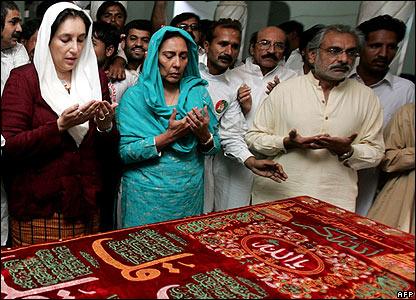 پیکر بی نظیر بوتو حوالی نیمروز جمعه 28 دسامبر در جوار آرامگاه پدرش، ذوالفقارعلی بوتو، که او هم از نخست وزیران پیشین پاکستان بود به خاک سپرده می شود.