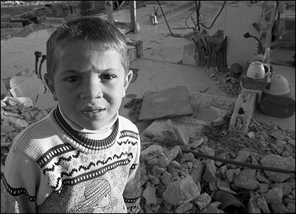 بسیاری از خانواده ها هنوز در کنار خرابه های خانه شان زندگی می کنند؛ مانند اين پسر بچه که با خانواده اش در محله "وادی دم" در منطقه بیت حنینه زندگی می کند.