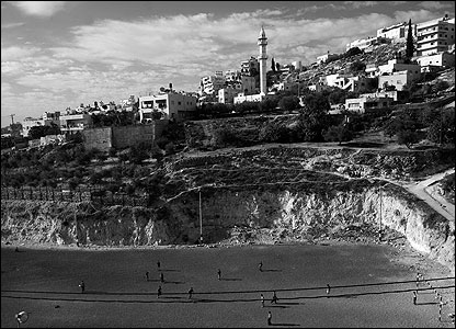 زمین فوتبال در محله فلسطینی نشین جبل مکبر. شهرداری بیت القمدس هيچ پارک یا مکان تفریحی ديگری در محله های فلسطینی بیت القمدس شرقی نساخته است. بنا به تحقیقی که در سال 2006 توسط مئیر مرگلیت، مورخ لیبرال اسرائیلی منتشر شد، اعراب ساکن بیت المقدس 33 درصد از جمعيت کل شهر را تشکیل می دهند، ولی سهمشان از بودجه رفاهی شهر 15 درصد و از بودجه آموزشی 12 درصد است.