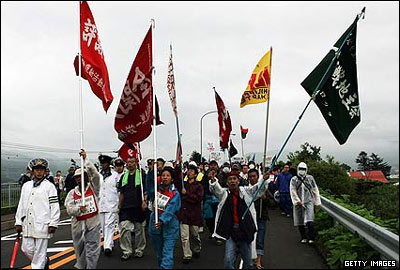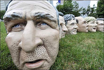 همزمان با آغاز به کار اجلاس گروه 8 در جزیره هوکایدو واقع در شمال ژاپن، فعالان مبارزه با فقر، برای حرکتی اعتراضی با استفاده از ماسک های چهره رهبران گروه 8، آماده شدند.