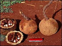 ''A maior parte das frutas ficam onde caem, no chão da floresta, até que sejam atacadas por fungos ou cupins. Mas as cutias vão roer a casca e enterrar a castanha para comer mais tarde'', disse Peres à BBC.