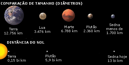 Sedna, o corpo celeste mais distante dentro do sistema solar, não tem uma lua, segundo os cientistas. Acreditava-se que sua rotação lenta era provocada pela gravidade de um corpo celeste pequeno nas proximidades. Mas agora os pesquisadores descartaram essa teoria, citando inclusive imagens captadas pelo telescópio espacial Hubble que não mostram nada perto do planeta. Os cientistas dizem que a descoberta inesperada da não-existência da lua pode oferecer pistas sobre a origem e evolução dos astros nos confins do sistema solar. A descoberta de Sedna, anunciada em 15 de março, levou a grande euforia entre astrônomos e a uma discussão entre cientistas sobre a validade de sua classificação como "planeta". 'Perplexo' O co-descobridor de Sedna, Mike Brown, do Instituto de Tecnologia da Califórnia (CalTech), nos Estados Unidos, estava tão convencido de início de que o corpo celeste tinha um satélite natural que a imagem feita por um artista divulgada quando do anúncio da sua descoberta incluía uma lua hipotética. "Eu estou totalmente perplexo com a ausência de uma lua," disse ele. "Isso torna Sedna ainda mais interessante." Imediatamente depois do anúncio da descoberta de Sedna, os astrônomos direcionaram as lentes do Telescópio Espacial Hubble para o novo "planetóide" para procurar a lua que o acompanharia. Foi necessário utilizar o telescópio espacial porque a turbulência da atmosfera da Terra torna a imagem de Sedna instável para telescópios terrestres. A imagem produzida por Hubble no dia 16 de março mostra um único objeto, Sedna, e uma estrela bem apagada no fundo, no mesmo campo de visão. "Apesar da imagem cristalina do Hubble (equivalente a tentar ver um campo de futebol a 1.500 quilômetros de distância), ela ainda não consegue deixar nítido o disco do misterioso Sedna," disse Brown. Mas a imagem do Hubble coloca um limite nas dimensões de Sedna, que tem aproximadamente três quartos do diâmetro de Plutão, cerca de 1.600 quilômetros. Brown esperava que um suposto satélite fosse visível como um pequeno ponto na imagem do telescópio espacial. O objeto não está lá, embora exista uma pequena chance de que ele esteja atrás de Sedna ou transitando na frente dele e portanto não poderia ser visto separadamente. Rotação lenta A rotação de Sedna foi calculada em observações anteriores das mudanças periódicas na luz refletida pelo objeto. Os dados indicam uma longa rotação, de mais de 20 dias (mas não mais de 50 dias). Se isso for verdade, pode fazer com que o Sedna seja o corpo celeste com rotação mais lenta no sistema solar, depois de Mercúrio e Vênus, cuja velocidade de voltas em torno de seu eixo se deve à influência do Sol. Uma forma fácil de sair desse dilema é a possibilidade de o período de rotação não ser tão vagaroso quanto os astrônomos acham. Mas a equipe de Brown está convencida de que os cálculos estão corretos.