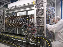 Físicos britânicos completaram a primeira fase de um aparelho experimental que foi criado com a finalidade de investigar as forças que moldaram o Universo. O projeto, conhecido como experiência Atlas, vai explorar as propriedades fundamentais da matéria e procurar uma “nova Física” que vá além dos limites do conhecimento atual. A experiência vai ser feita no acelerador de partículas LHC (Large Hadron Collider), que deve entrar em funcionamento em 2007. O LHC vai criar miniburacos negros promovendo colisões de partículas altamente energizadas e recriando condições existentes logo após o Big Bang, fenômeno apontado como sendo a origem do Universo. Massa Os pesquisadores estão confiantes de que, com estas experiências, vão conseguir detectar a partícula mais procurada da Física: o boson de Higgs. Ela seria a chave para explicar por que todas as outras partículas contêm massa. O elemento que já está pronto é o primeiro dos quatros cilindros do chamado STC (SemiConductor Tracker), que vai rastrear o movimento das partículas. Quando estiver pronto, o Atlas, que está sendo construído na fronteira da Suíça com a França, vai ter 25 metros de altura e 46 metros de comprimento. Seu peso será de 7 mil toneladas. |