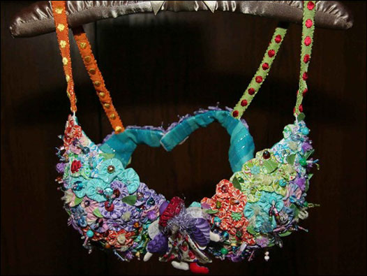 Usando diferentes técnicas, as costureiras criaram sutiãs únicos como o Carolyn's Garden, de Sue Spillane.