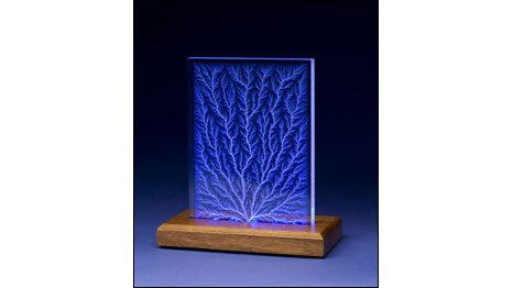O americano Bert Hickman transformou em arte seus 32 anos de experiência como experiência como engenheiro, criando esculturas com descargas elétricas.