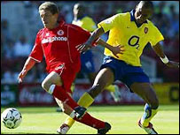 Henry abriu o marcador aos cinco minutos, Gilberto Silva fez o dele oito minutos depois. E, aos 22, Wiltord fez o terceiro. O quarto, também de Wiltord, "só" veio aos 15 do segundo tempo, quando Edu ainda nem tinha entrado em campo para substituir Pires. O Middlesbrough, de Juninho e Doriva, até teve algumas chances, mas não conseguiu nem um golzinho para sua torcida. Numa das oportunidades, no fim do jogo, Juninho quase conseguiu um gol de consolação, mas o goleiro Jens Lehmann fez uma grande defesa para o Arsenal. Talvez a história do jogo tivesse sido um pouco diferente, caso os dois novos contratados do Middlesbrough tivessem entrado em campo. Mas, como eles, o "se" não jogou. A papelada para que Mendieta e Danny Mills pudessem entrar em campo neste fim de semana não ficou pronta a tempo, mas eles assistiram ao jogo nas arquibancadas para tentar, em vão, dar uma forcinha para a equipe. Ainda é cedo para falar em campeões, mas acredito que, mais uma vez, o título deve ficar entre Arsenal e Manchester. O Chelsea fez um monte de contratações e tem chances – é lógico –, mas acho que vai ficar em terceiro. Para mim, o desempenho de Arsenal e Manchester contra o Chelski – apelido que o Chelsea ganhou depois de ter sido comprado por um milionário russo – vai ser decisivo. Espero que depois desse 4 a 0 do Arsenal, Rodrigo Amaral entenda o significado do termo "chocolate", que ele usou para definir um jogo que terminou 2 a 1 na rodada passada. Time da semana Thomas Sorensen (Aston Villa); Jamie Carragher (Liverpool), Rio Ferdinand (Manchester United), Olof Mellberg (Aston Villa) e Mauricio Taricco (Tottenham); Roy Keane (Manchester United), Frank Lampard (Chelsea), Matt Holland (Charlton) e Robert Pires (Arsenal); Frederic Kanoute (Tottenham) e Thierry Henry (Arsenal). Você concorda com a escalação dos melhores da rodada? Comentários dos internautas "Estou torcendo para o Arsenal. O time do Gilberto Silva, último grande jogador que meu time, o Galo, teve." "Gosto muito do futebol inglês, em especial do Middlesbrough, onde joga o nosso Juninho. Espero que este ano ele tenha um bom desempenho, e melhor sorte, mas o Manchester United ainda é o favorito." "Sou corintiano roxo e fanático. Na Inglaterra, tenho simpatia pelo Corinthian Casuals (é lógico) e também pelo Tottenham Hotspur. Prá cima deles, Spurs!!!" "O início da temporada inglesa é promessa de grandes jogos e jogadas fantásticas. A miscigenação de jogadores e os altos investimentos fazem da Premiership, sem dúvida, a melhor liga da Europa. E as equipes britânicas prometem para a Liga dos Campeões." "Espero que, daqui a algum tempo, o nosso Campeonato Brasileiro seja tão organizado quanto o Campeonato Inglês. Um país pentacampeão mundial tem de ser o melhor em tudo. Abaixo os cartolas corruptos e as federações decadentes." "Depois do bom início, tomara que os Gunners consigam repetir a temporada retrasada e conquistar novamente o double." "Se futebol é espetáculo, então o futebol inglês é uma espécie de big bang na Europa. A Premiership está assente numa superestrutura organizada. Tem estádios, tem adeptos amantes do desporto rei, que vidram e deliram a cada lance. A coisa estará bonita nos proximos lances!" "Gostaria de expressar que sou um fã incondicional do futebol inglês. Acho lindo os estádios lotados, a organização, os uniformes das equipes e particularmente adoro o Tottenham Hotspur. O meu sonho é um dia conhecer Londres e visitar todos os estádios e assistir a uma partida do Tottenham, de preferência contra o Arsenal. O que me entristece é o fato de nenhum canal passar jogos do futebol inglês aqui no Brasil. Passam jogos do futebol holandês, que é uma piada." Veja quem é quem no Campeonato Inglês Clique nos links abaixo para saber mais sobre os clubes que disputam a Premiership, o Campeonato Inglês: