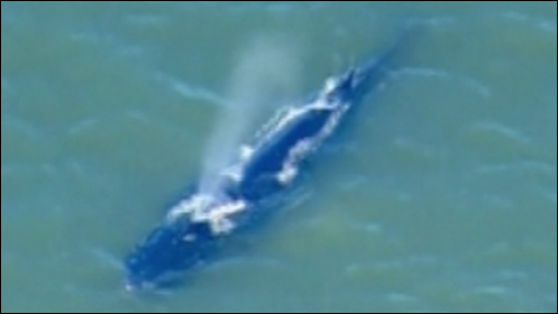Um barco da Guarda Costeira escoltou o animal para evitar acidentes com outras embarcações.