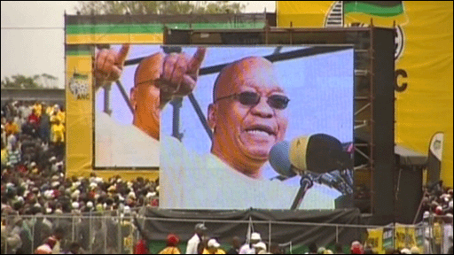 Jacob Zuma, líder do partido CNA, o Congresso Nacional Africano, espera se tornar o próximo presidente da África do Sul.