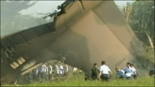 Imagens de televisão mostraram soldados com macas tentando retirar os feridos do local do acidente, que seria de difícil acesso por estar próximo a uma plantação de arroz.